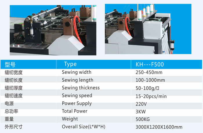 This machine adopts mechanical, electrical, optical integration technology, suitable for sewing non-woven flour bag. This machine can independently accomplish the effect of automatic sewing and replaces the manual sewing machine. The speed up to 1000pcs/hour(manual sewing machine only 200pcs/hour), one person can independently accomplish the work of 2.5KG, 5KG and 10KG non-woven flour bag sewing, which largely improve the production efficiency and reduce the production cost.
